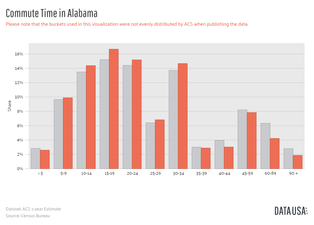 Does it take you forever to get to work? Have you ever wondered how others’ commute times in Alabama are compared to yours? In Alabama, the average commute time is 23.9 minutes, which is less than the national average.