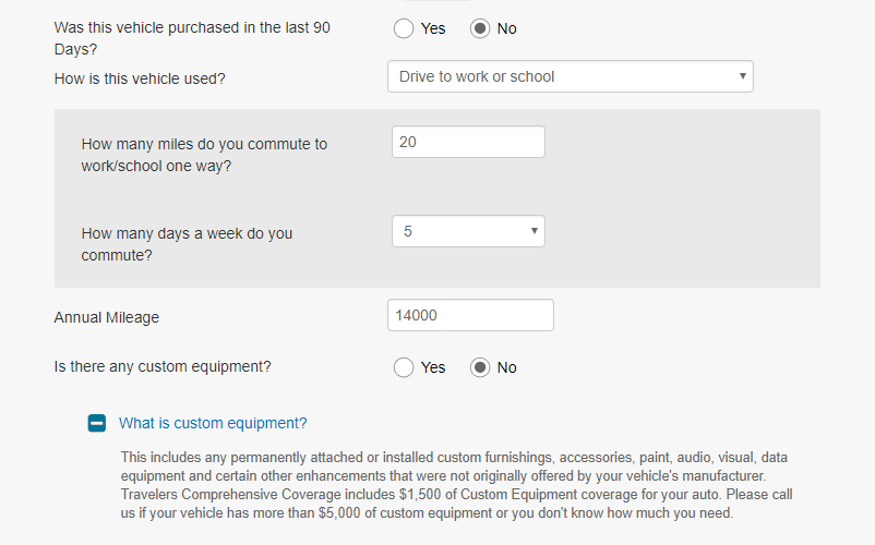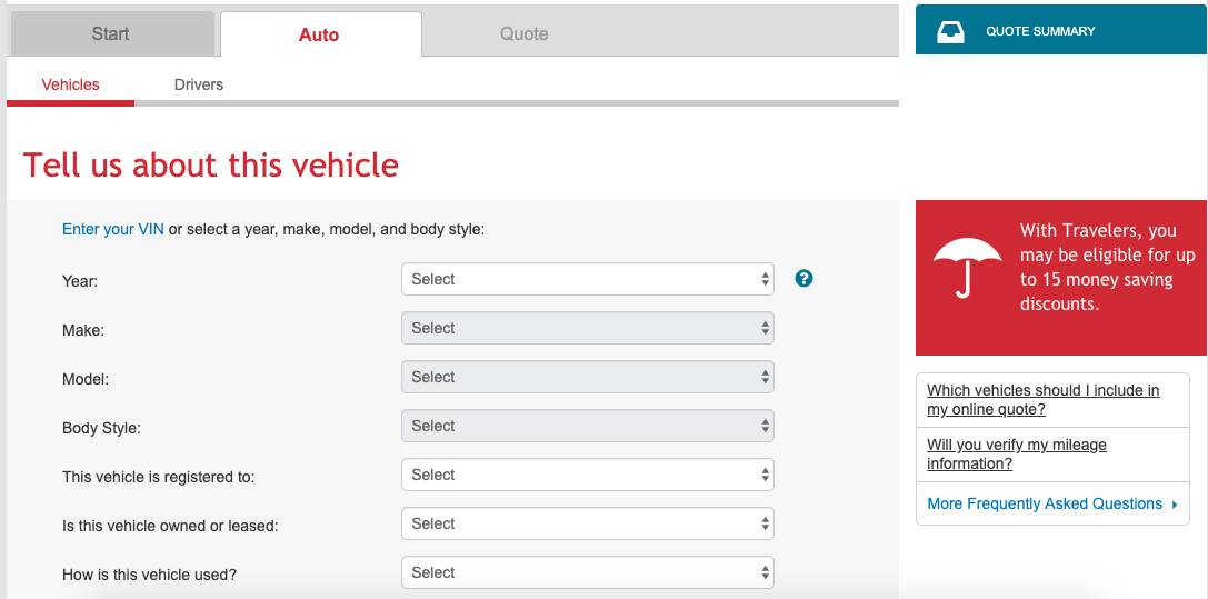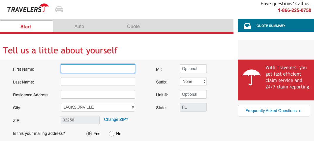 Travelers makes it easy to get a quote, as you don’t need information like a social security card or proof of a drivers license (although you will need these things if you buy a policy).