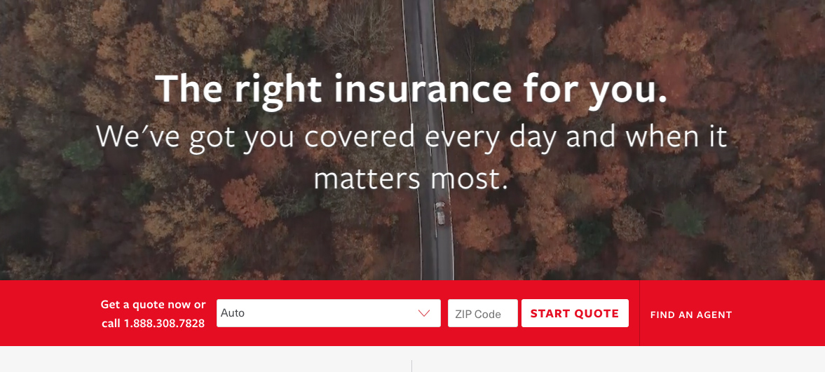The first thing you’ll need to do is go to Travelers’ website. Right away, you’ll see a red banner advertising a free quote.