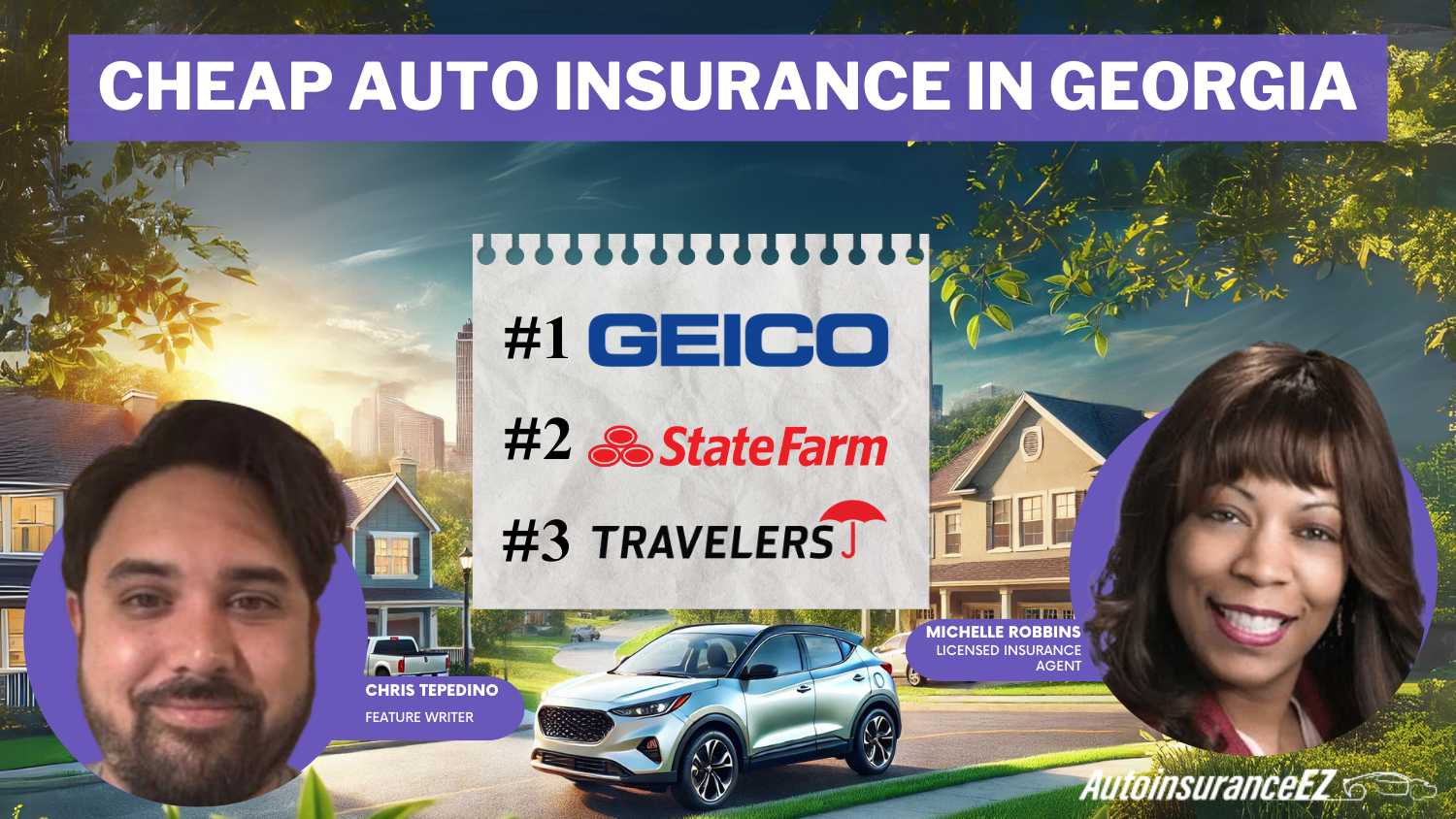The top providers of cheap auto insurance in Georgia are Geico, State Farm, and Travelers. They offer competitive rates starting at $24 per month (Read more: Lowering Auto Insurance Premium Costs).