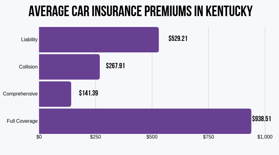The average liability coverage annual premiums in Kentucky is $529 as per data from the National Association of Insurance Commissioners.