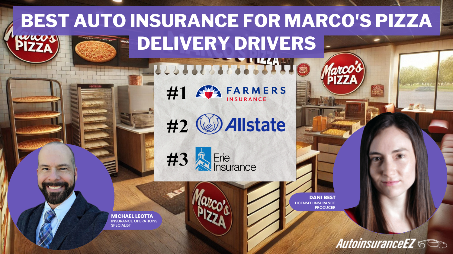 1,883 reviewsThe best auto insurance for Marco’s Pizza delivery drivers comes from Farmers, Allstate, and Erie, which are known for their great coverage and fair rates. Farmers are a standout with flexible policies and strong protection for delivery work.