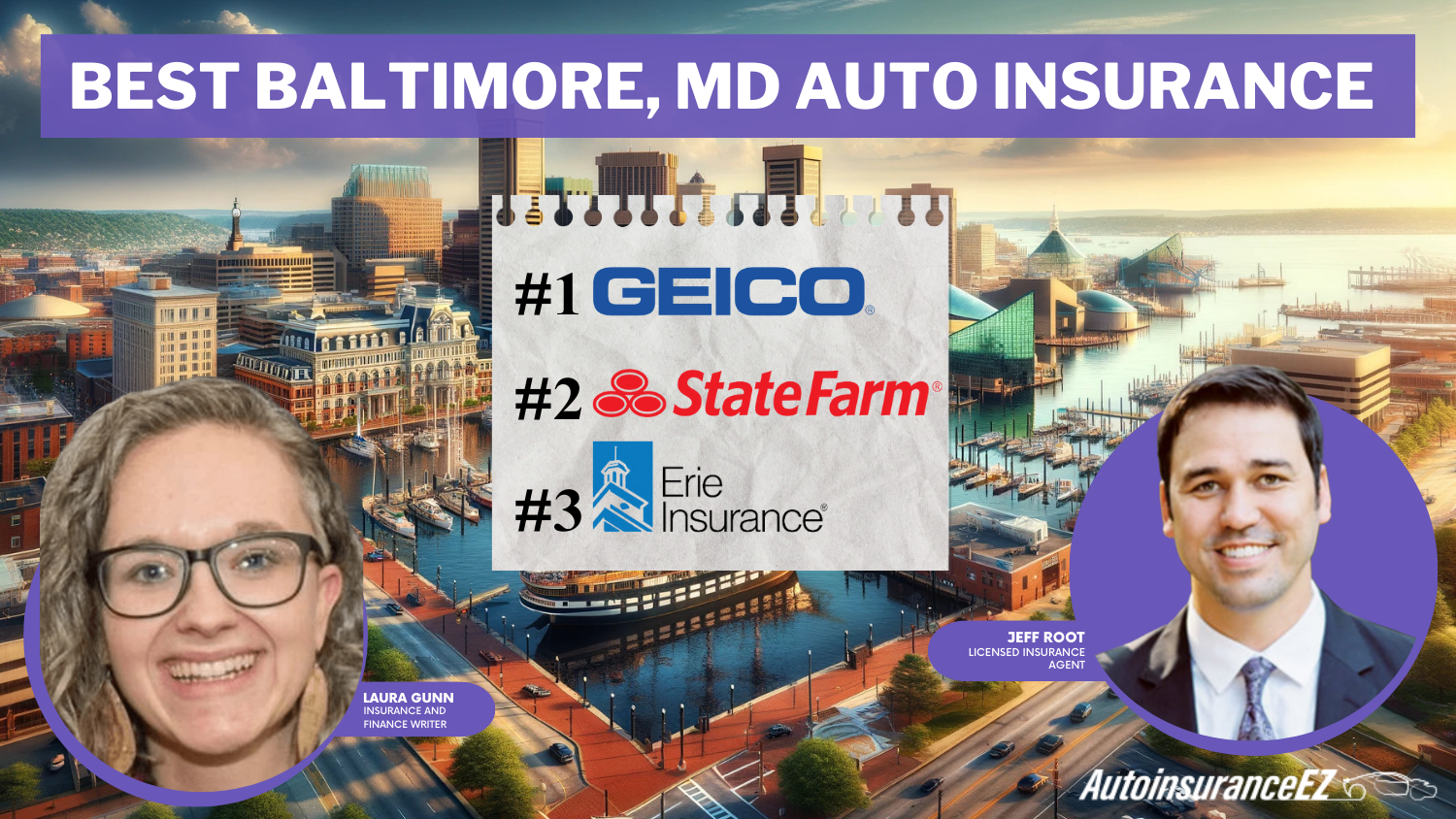 Geico, State Farm, and Erie offer the best Baltimore, MD, auto insurance, with beginning rates of only $107 a month. They are highly focused on providing comprehensive coverage and cost-effectiveness for their customers. Compare their policies to find the ideal option for your vehicle needs in Baltimore, Maryland.