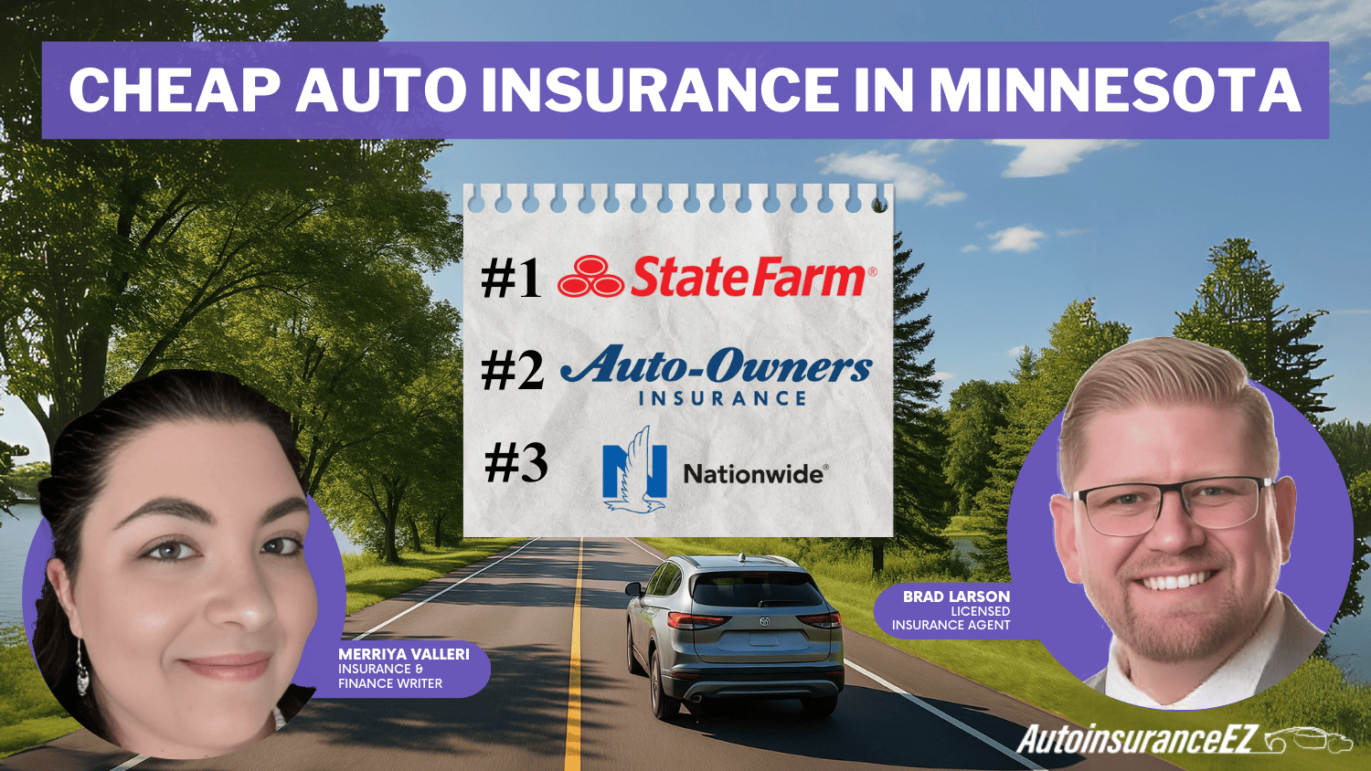 Get cheap auto insurance in Minnesota from top providers like State Farm, Auto-Owners, and Nationwide. State Farm offers the cheapest car insurance in Minnesota for as low as $27 per month. Auto-Owners stands out with its financial strength. Nationwide is known for its accident forgiveness program.