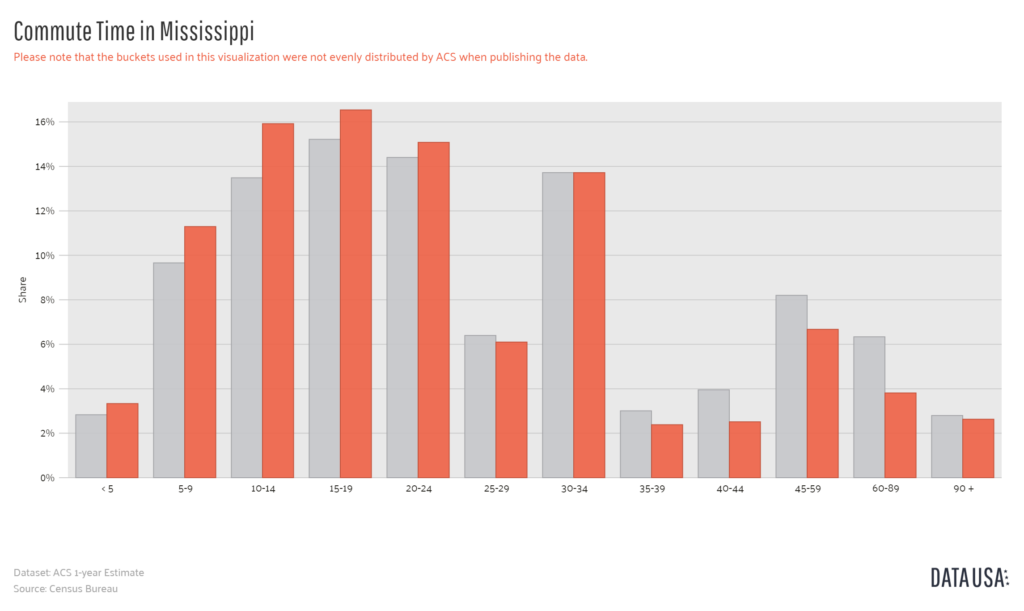 Let’s go over some transportation-related data and explore Mississippi’s commute times, car ownership statistics, and other information so you know what to expect as a resident of the Magnolia State.