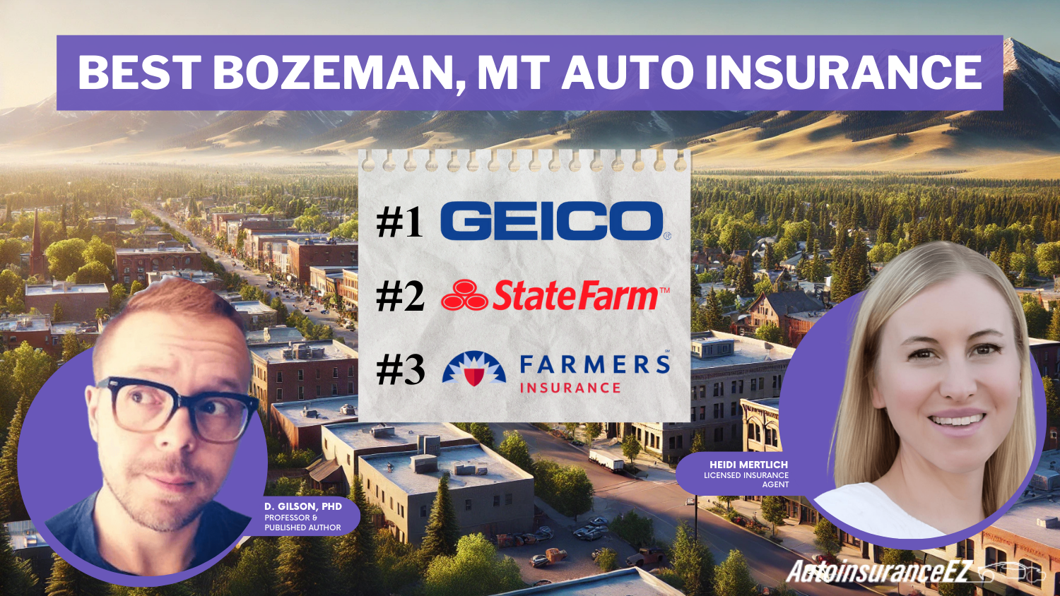 Geico is the best choice for the best Bozeman, MT auto insurance, with its low monthly rates starting at just $18. Along with State Farm and Farmers, Geico offers the best coverage choices at very affordable prices balanced with reliability to help you find and choose the right coverage.