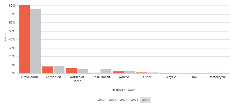 Take a look at the charts below regarding car ownership and commuting.