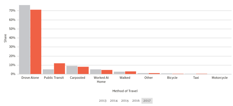 While most drivers still choose to drive to work alone, New Jersey still has a higher use of public transportation than the United States average.