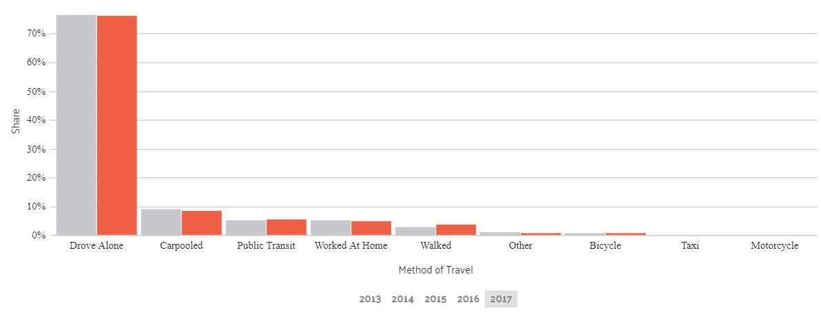 Your average commute to work is affected by a number of factors in your city, such as the number of cars owned by households and the preferred mode of transportation.