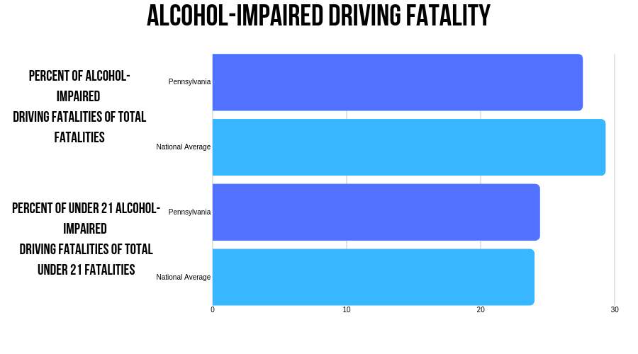 Though the DUI arrest rates are high in Pennsylvania, the rate of under 21 alcohol-impaired driving fatality per 100,000 people was 0.8, much lower than the national average of 1.2.