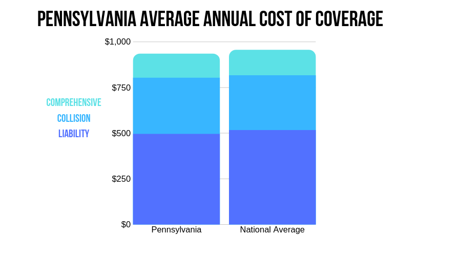 Auto insurance premium in Pennsylvania is at par with the national average.