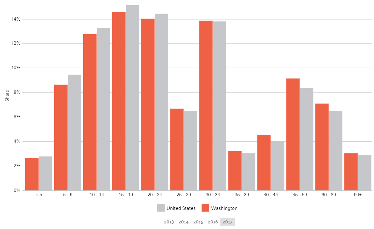 Traffic congestion is a nuisance for everyone, especially when you’re driving to work. Well, we can’t change the traffic situation in Seattle but can provide some data about transportation in your state.