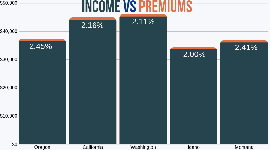 You can also compare the percentage of premiums to income ratio of Washington with other neighboring states. Apart from Idaho, the ratio of premium to income is the best in Washington.