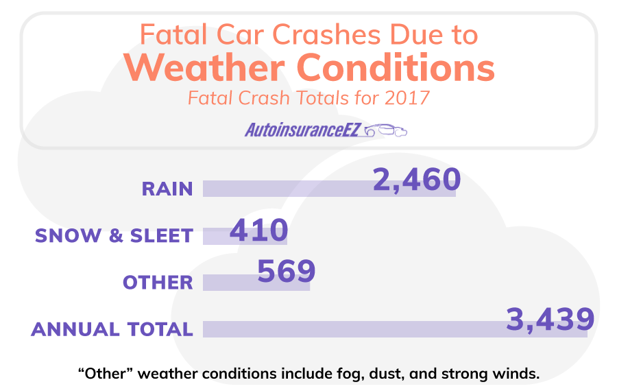 Weather conditions caused an average of 17 fatal crashes for every 1 mill drivers per year. In the 10 states with the worst weather-related fatal crashes, these averages are even higher.