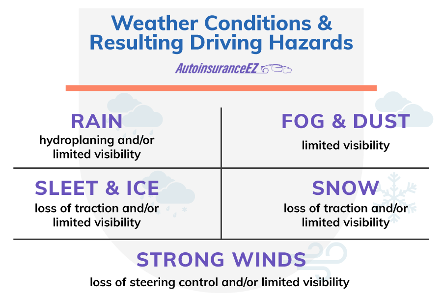 Other weather conditions can include a wide range of risky driving conditions, such as high winds, dust, and fog.