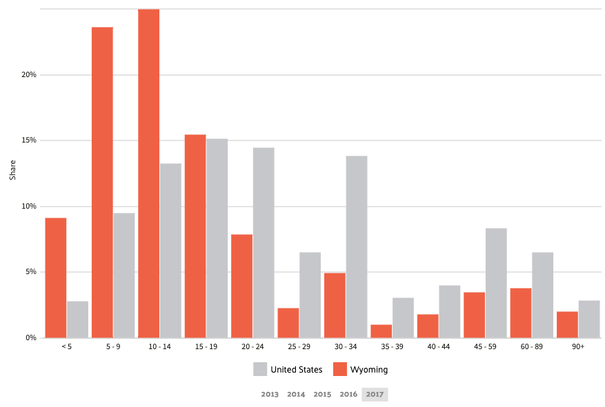 Drinking and driving is dangerous, but it’s arguably even more dangerous to be a teenager who is drinking and driving. In Wyoming in 2016, there were 1.9 under-21 alcohol-related driving deaths per 100,000 people. That’s significantly higher than the national average of 1.2.